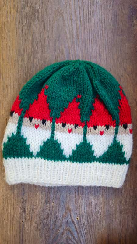 Jóla húfa prjónuð