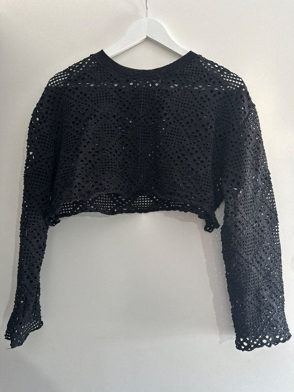 Svört götótt cropped peysa