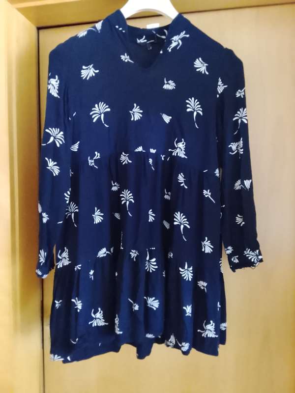 Kjóll síðerma,dökkbl.hvítur